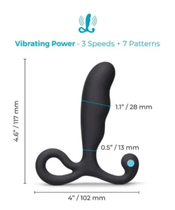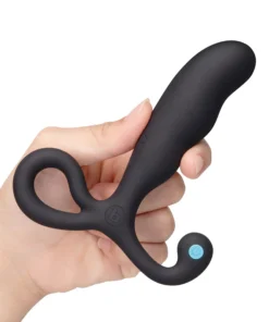 The b-Vibe P-Spot Vibing is a compact, lightweight prostate massager with 3 vibration speeds and 7 patterns. Even while turned off, contracting and relaxing your sphincter muscles allows the P-Spot Vibing to deliver hands-free prostate massaging sensation with its bulbous head and contours. It also provides stimulation at the perineum with external arms, including a looped handle for easy removal, and ribbing at its base.