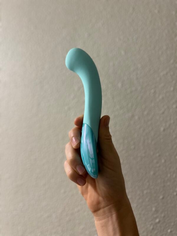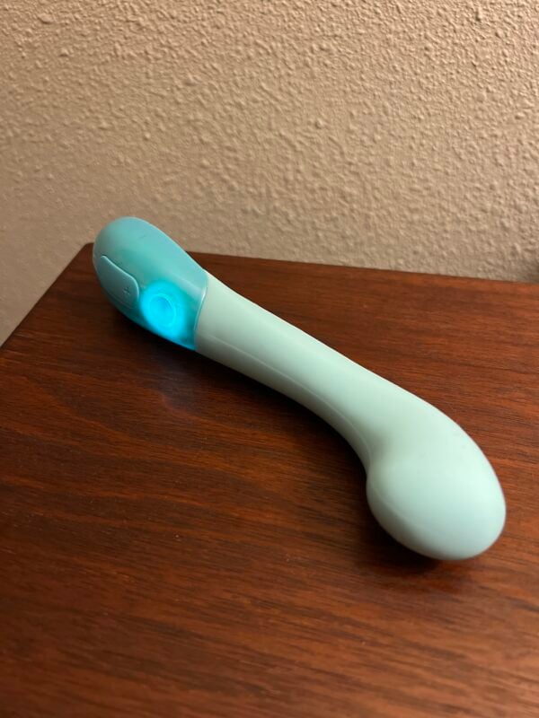 The Biird Gii Glow vibrator is a surprisingly lightweight yet rumbly-in-a-bouncy-way g-spot vibrator that also works well as an external wand. It comes in adorable packaging and includes a cute zipper storage case. It’s also silky smooth, has a firm shaft, and is fully waterproof.