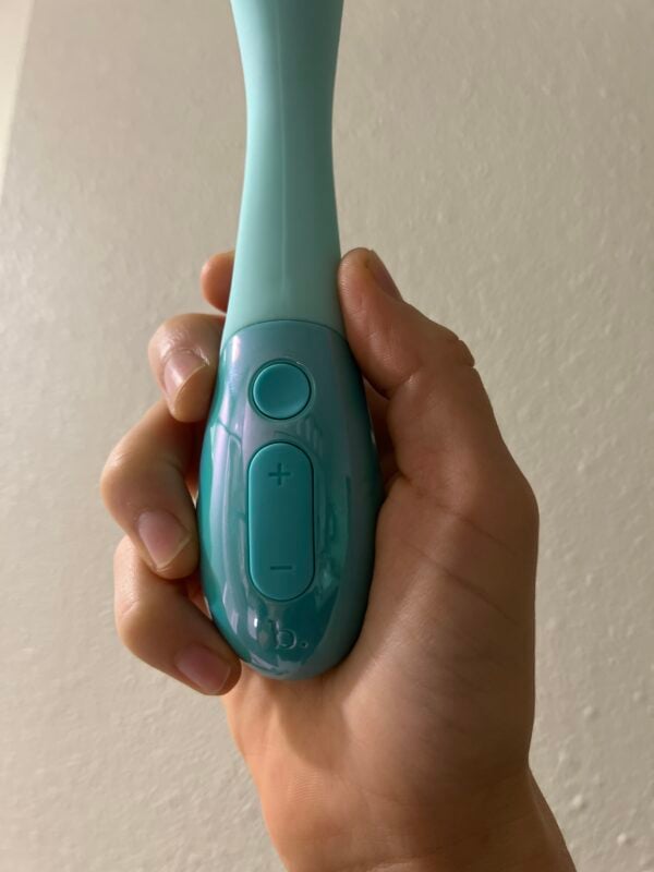 One drawback of the button situation is that they are located exactly where I prefer to rest the base of my thumb during use. Since becoming accustomed to resting my thumb at the very end of the handle, this wasn’t an issue, but I’ve inadvertently pressed the power button several times when I mean to lower the vibe speed and made a few other mis-fingerings. Not a HUGE deal, but still.
