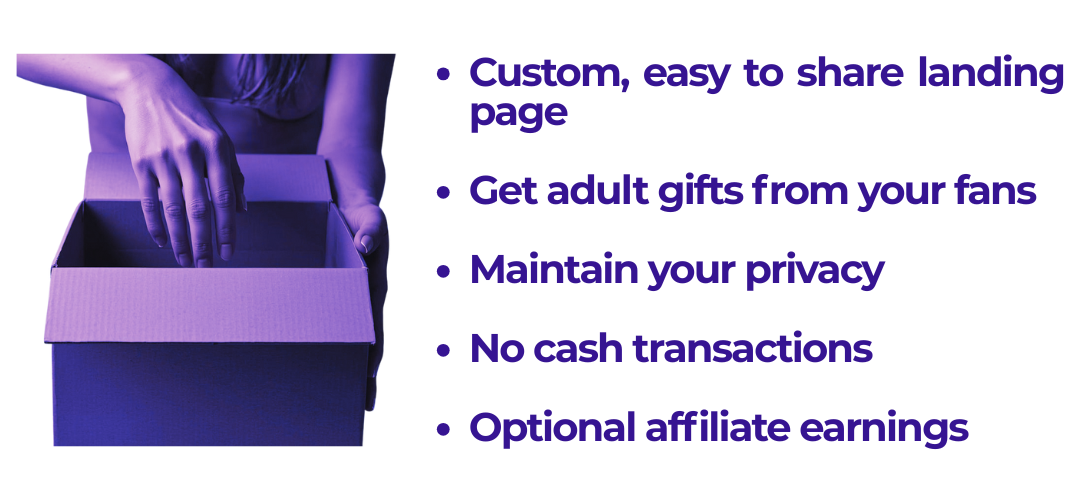 Share or promote your Wishlist during cam sessions or streaming so your fans can send you adult items without requiring any legwork on your part! This allows you to focus on fan engagement and building your brand as you receive, unbox, and enjoy your items – on or off screen!