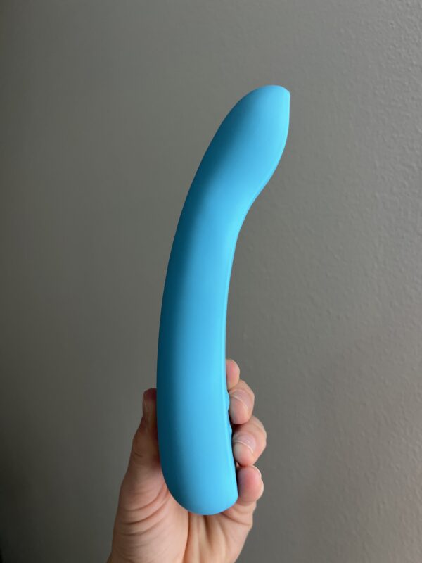 Another observation: when it’s plunged inside, curve facing in toward the front of my body, the shaft of the Aonami still comes into contact with the base of my clit, transferring teasingly subtle vibrations. The edges of the flattened side gently stimulate this area too, as the tip massages, and that feels super nice. Its curvature is just about perfect for me.