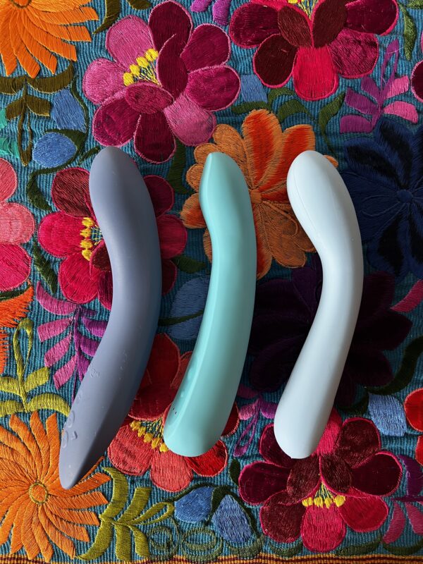It’s been a while since I’ve tried an Iroha toy, but I’m always excited when a sample comes in. They have a knack for soft, squishy, fleshy silicone with a luxurious feel. (Iroha donates a portion of their profits to cervical cancer prevention.) Iroha Tsuki+ Aonami has a pronounced “come hither” curling or massaging motion at its tip that you can pair with its bouncy, mid-range vibrations.