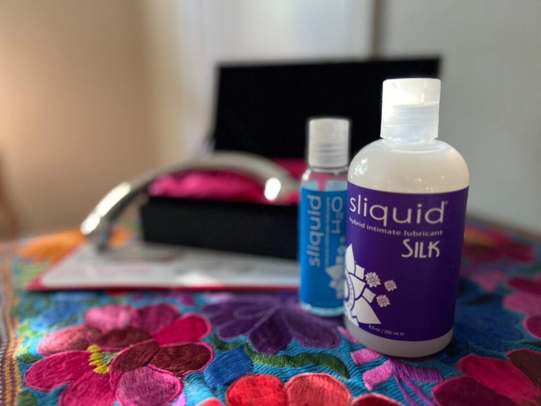 I like to use Sliquid Water-Based Lube or Sliquid Silk Hybrid Lube (see bundle option here!) for the Pure Wand play because they use cellulose instead of glycerin, and they’re free of parabens as well. For glass and stainless-steel toys, I think hybrid lube offers the best of both worlds. I use it with glass and stainless-steel toys because it doesn’t evaporate as quickly as water-based lube. Hybrid or silicone-based lube doesn’t degrade toys made of inert materials like stainless steel or glass, so you have lotsa lube options with the Pure Wand! When pairing a super-slick lube with a heavy or fragile toy, I’ll usually play in bed so that I don’t accidentally drop and damage the piece.
