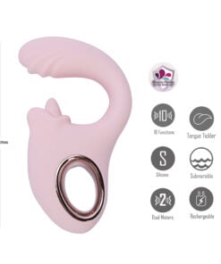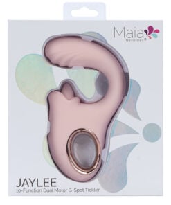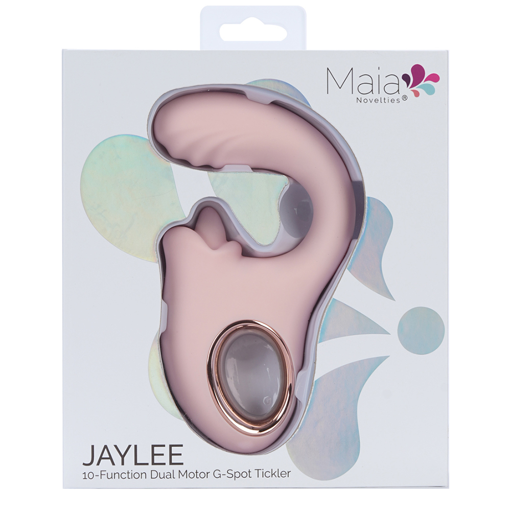 The Maia Jaylee is a dual stimulating vibrator with a 4 3/4″ internal arm for g-spot stimulation and a small vibrating tongue for clitoral stimulation. Silicone and fully waterproof, each motor in the Jaylee has 3 speeds and 7 patterns.